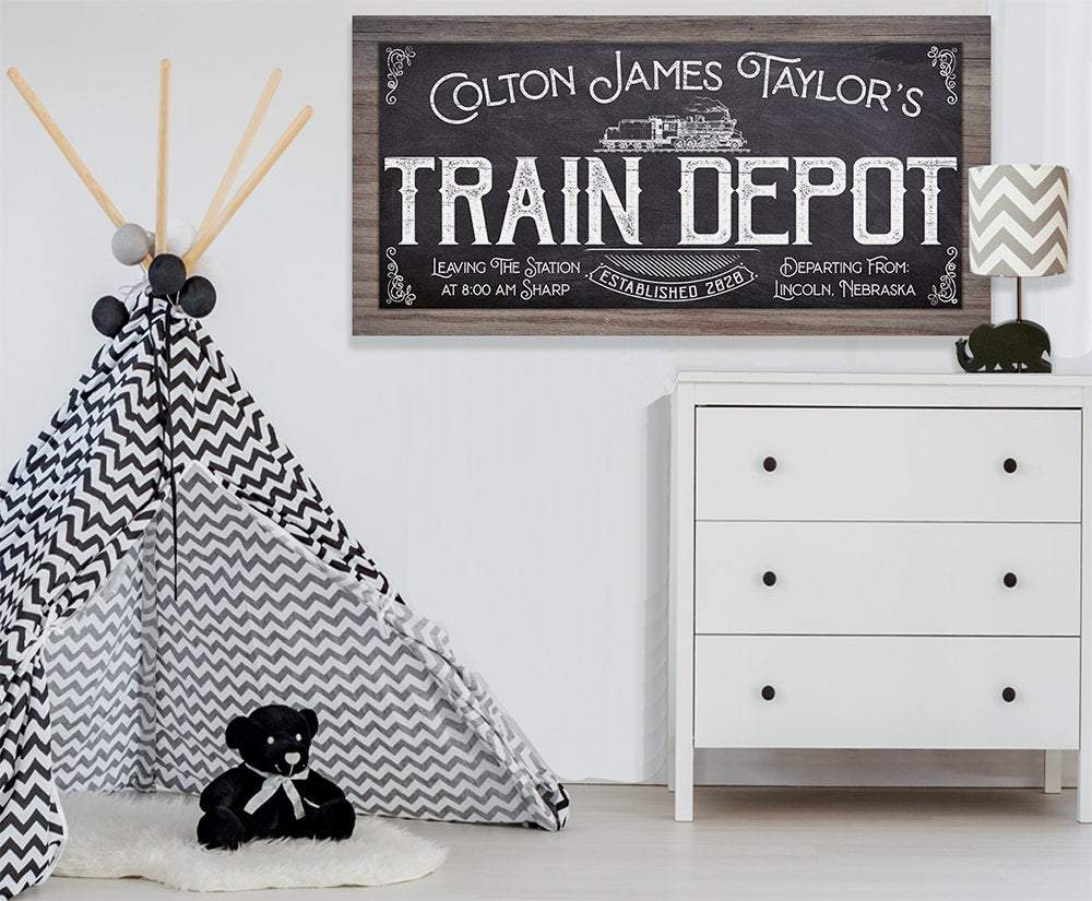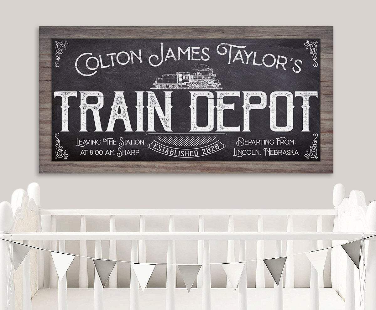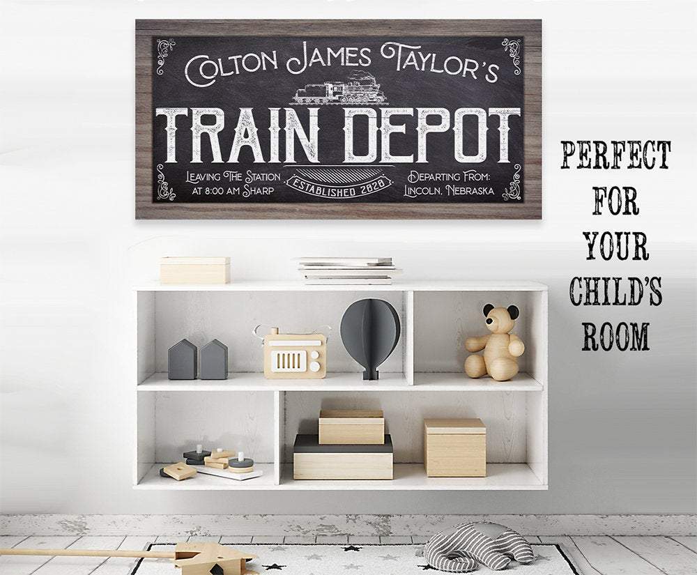 Personalized-Train Depot-Large Canvas Wall Art(Not Printed on Wood) - Stretched on a Wood Frame
