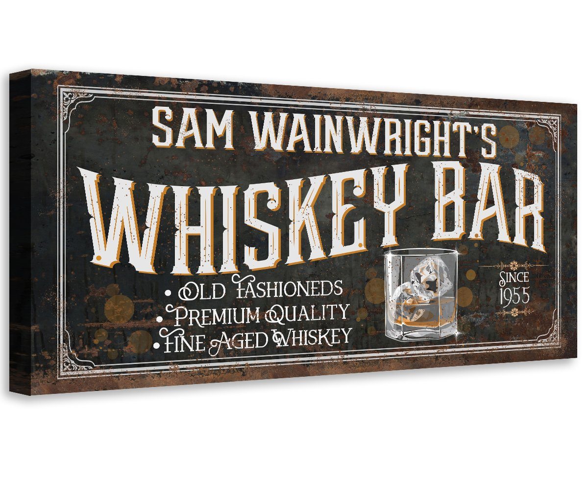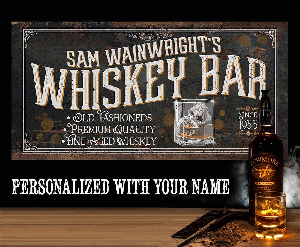 Personalized-Whiskey Bar-Large Canvas Wall Art(Not Printed on Wood) - Stretched on a Wood Frame