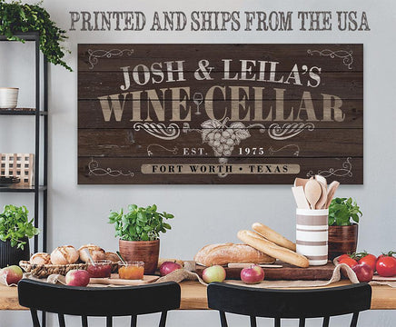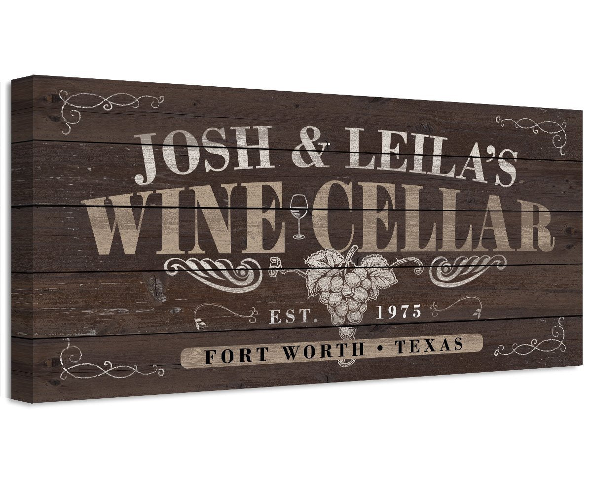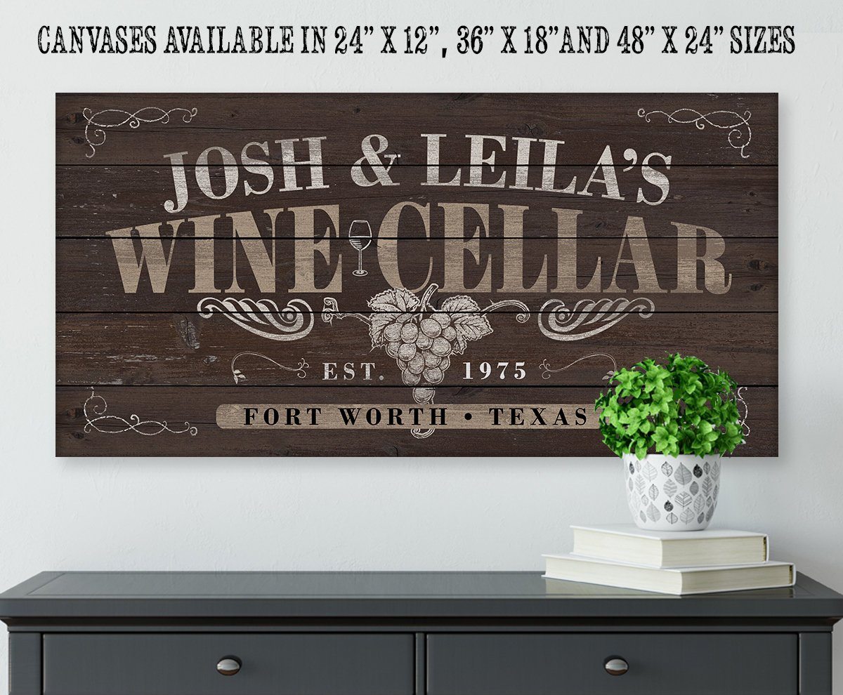 Personalized - Wine Cellar - Large Canvas Wall Art (Not Printed on Wood) - Stretched on a Wood Frame - Perfect Personalized Cellar or Bar Decor - Makes a Great Housewarming Gift