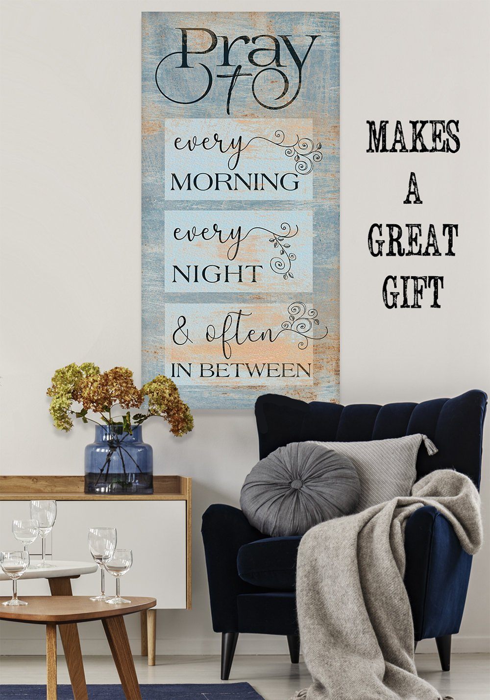 Pray Every Morning-Large Canvas Wall Art(Not Printed on Wood) - Stretched on a Wood Frame