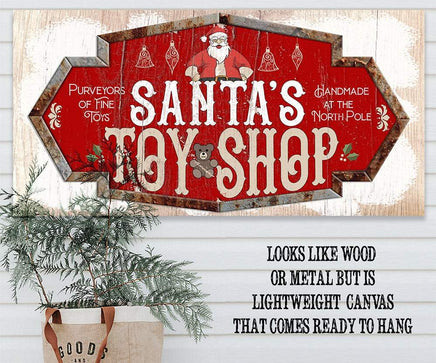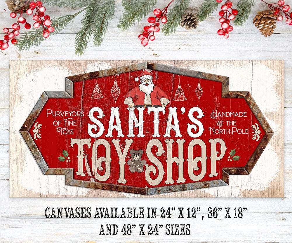 Santa's Toy Shop - Large Canvas Wall Art (Not Printed on Wood) -Stretched on a Heavy Wood Frame - Ready to Hang - Makes a Great Christmas Toy Shop Decor