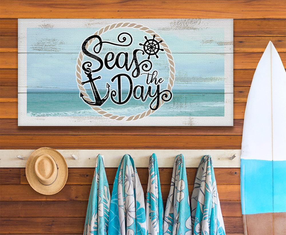 Seas The Day-Large Canvas(Not Printed on Wood)Stretch on Heavy Wood Frame-Ready to Hang-Beach House