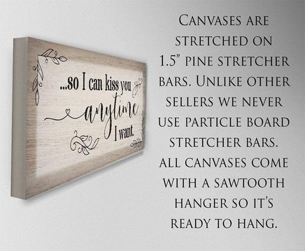So I Can Kiss You - Large Canvas (Not Printed on Wood) - Stretched on a Wood Frame - Above Headboard Decor-Great Housewarming Wedding Gift
