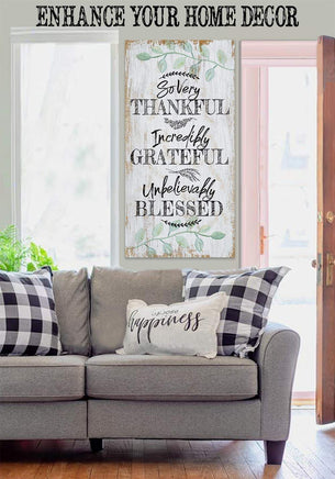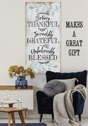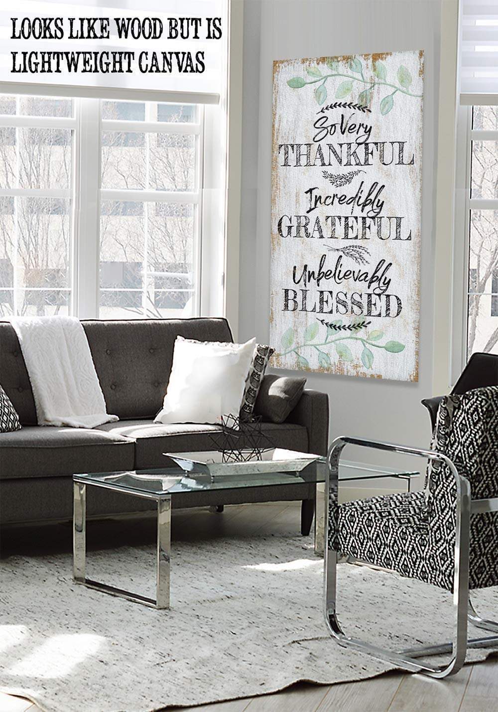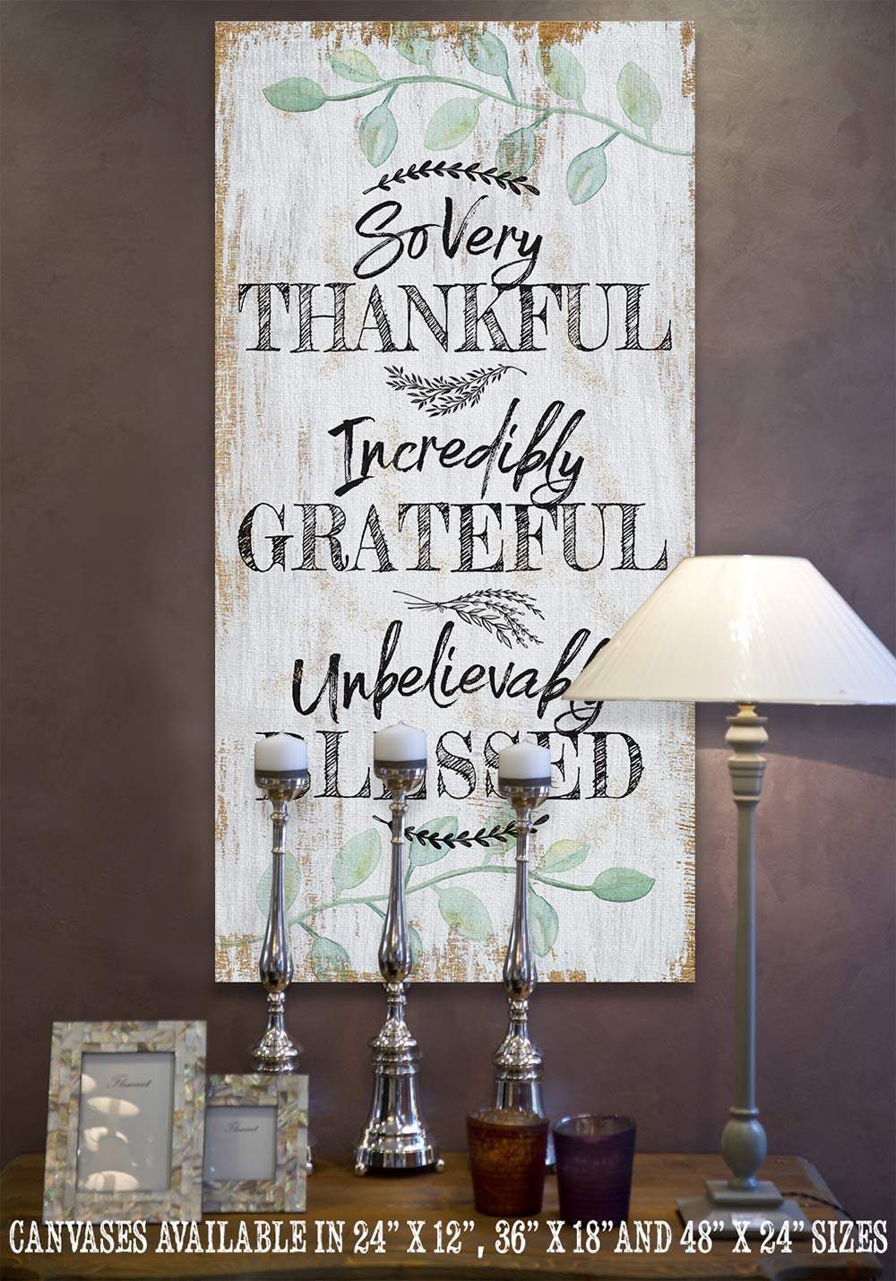 So Very Thankful - Large Canvas Wall Art (Not Printed on Wood) - Stretched on a Heavy Wood Frame - Perfect Above Couch or for Dining Room Decor - Makes a Great Housewarming Gift