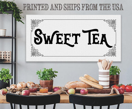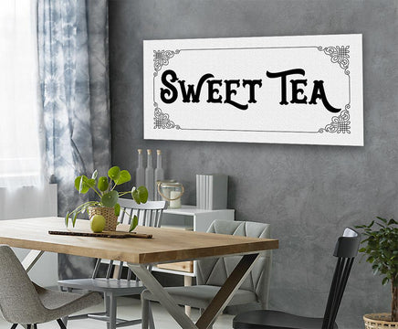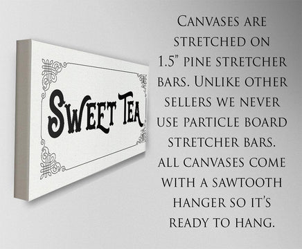 Sweet Tea - Large Black and White Canvas Wall Art - Stretched on a Heavy Wood Frame - Kitchen Dining Decor - Housewarming and Wedding Gift