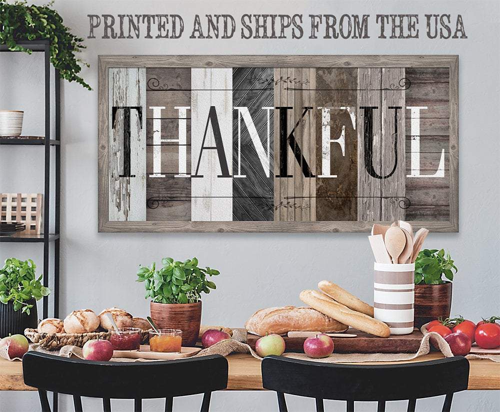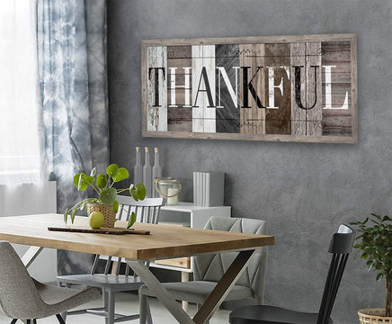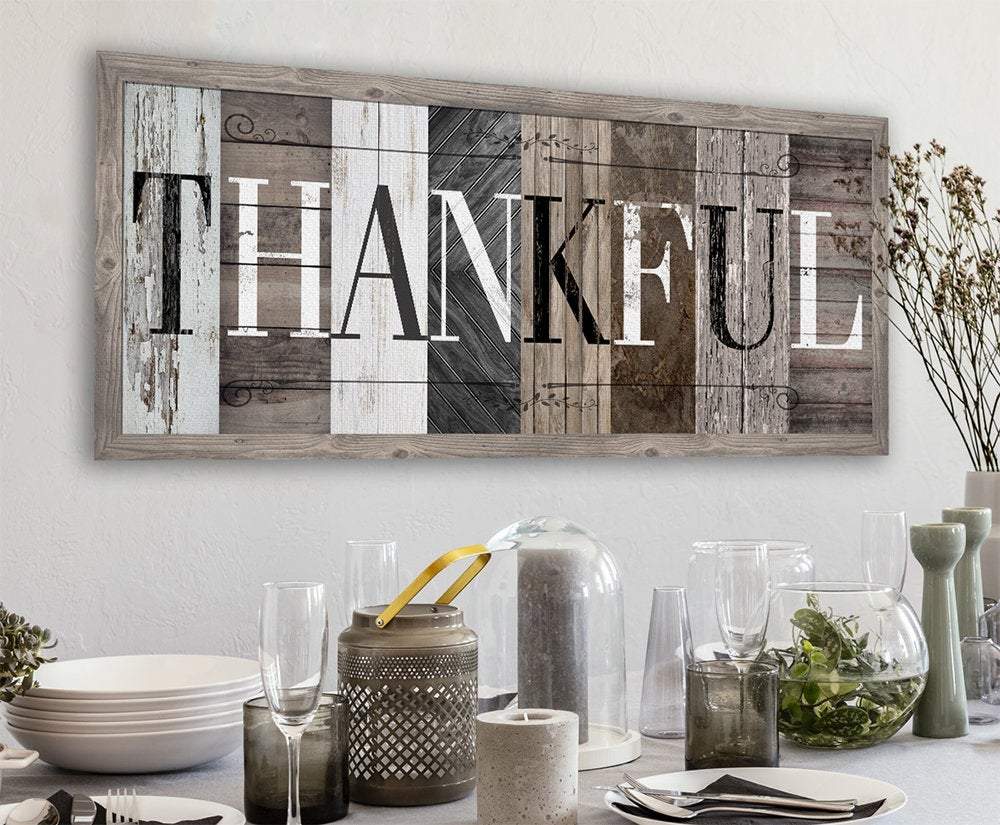 Thankful in Multi Pattern - Large Canvas Wall Art (Not Printed on Wood) - Stretched on a Heavy Wood Frame - Perfect Above a Couch or Dining Room Decor-Great Housewarming & Wedding Gift
