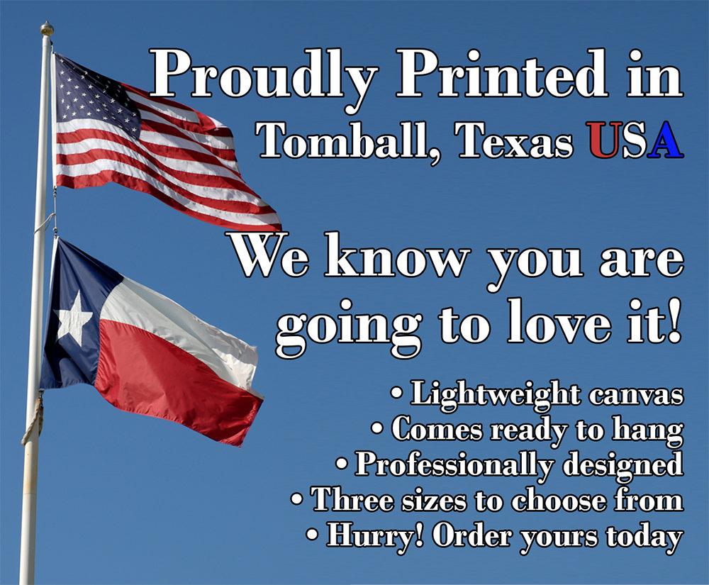 MADE IN AMERICA - All our canvas artwork is hand-stretched by our employees in Tomball, Texas. We take pride in doing the work here and doing it right. REAL WOOD - We only use real pine 1.5" stretcher bars. We never use cheap particleboard stretcher bars like other sellers.
