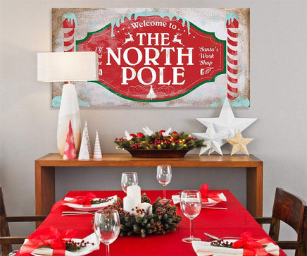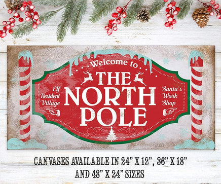 Welcome To The North Pole-Canvas(Not Printed on Wood)Stretched on Wood-Ready to Hang-Christmas Decor