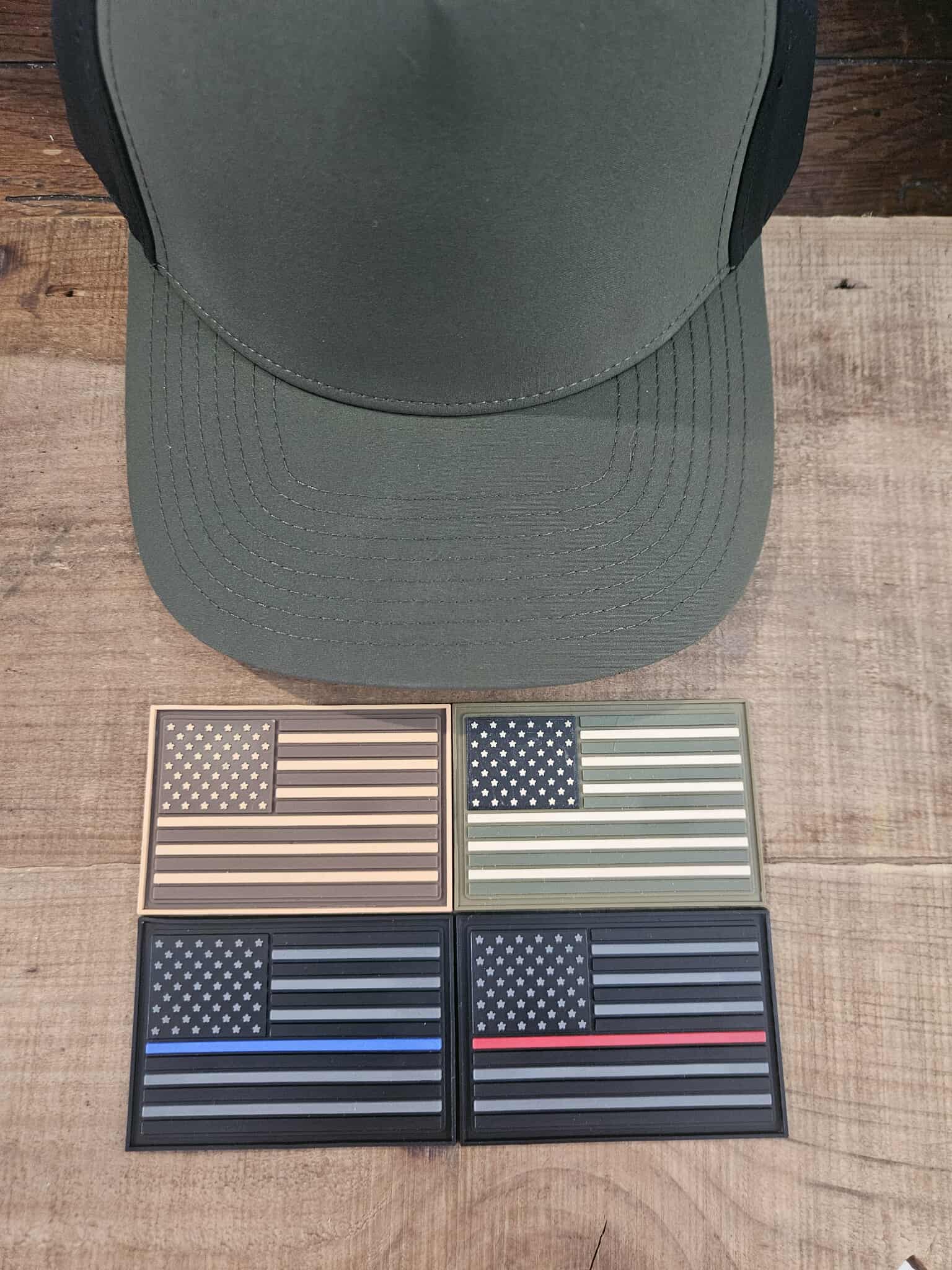 These 3"x2" patches are made from durable rubber/PVC material, perfect for attaching to hats, uniforms, bags, or promotional gear.