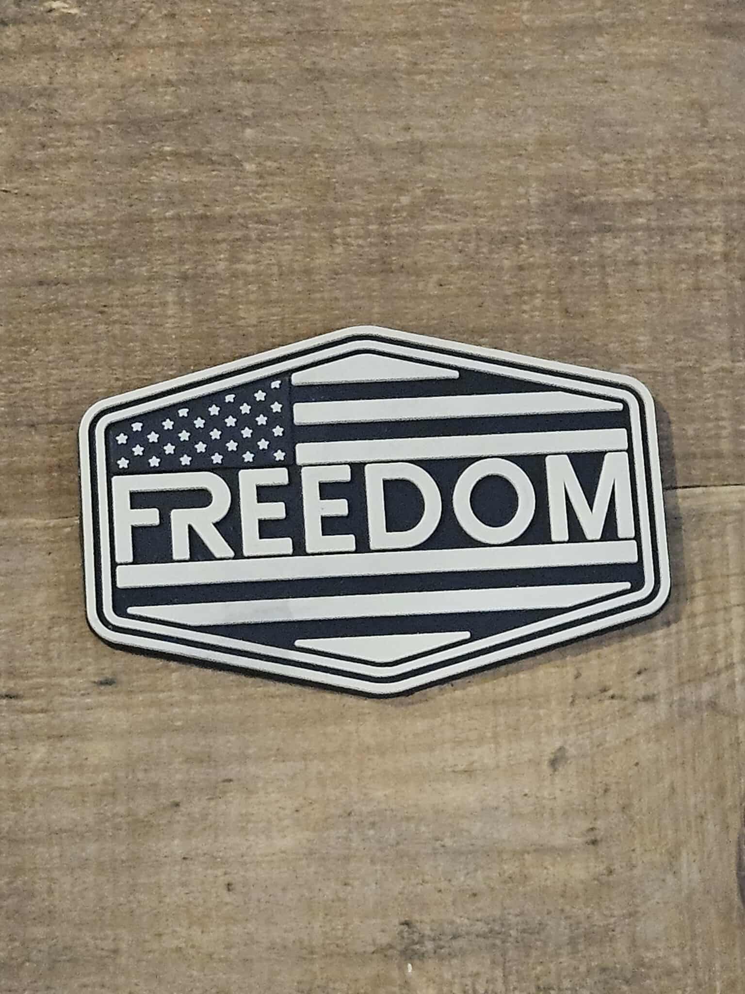 These 3.4" wide hex patches are made from durable rubber/PVC material, perfect for attaching to hats, uniforms, bags, or promotional gear.