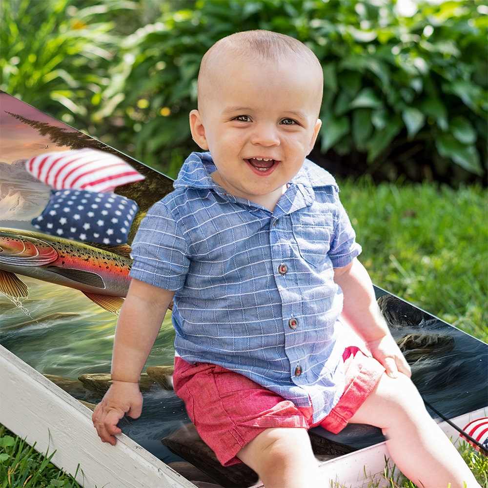 Blue Lake Fishing - Cornhole Board Wrap - Set of 2