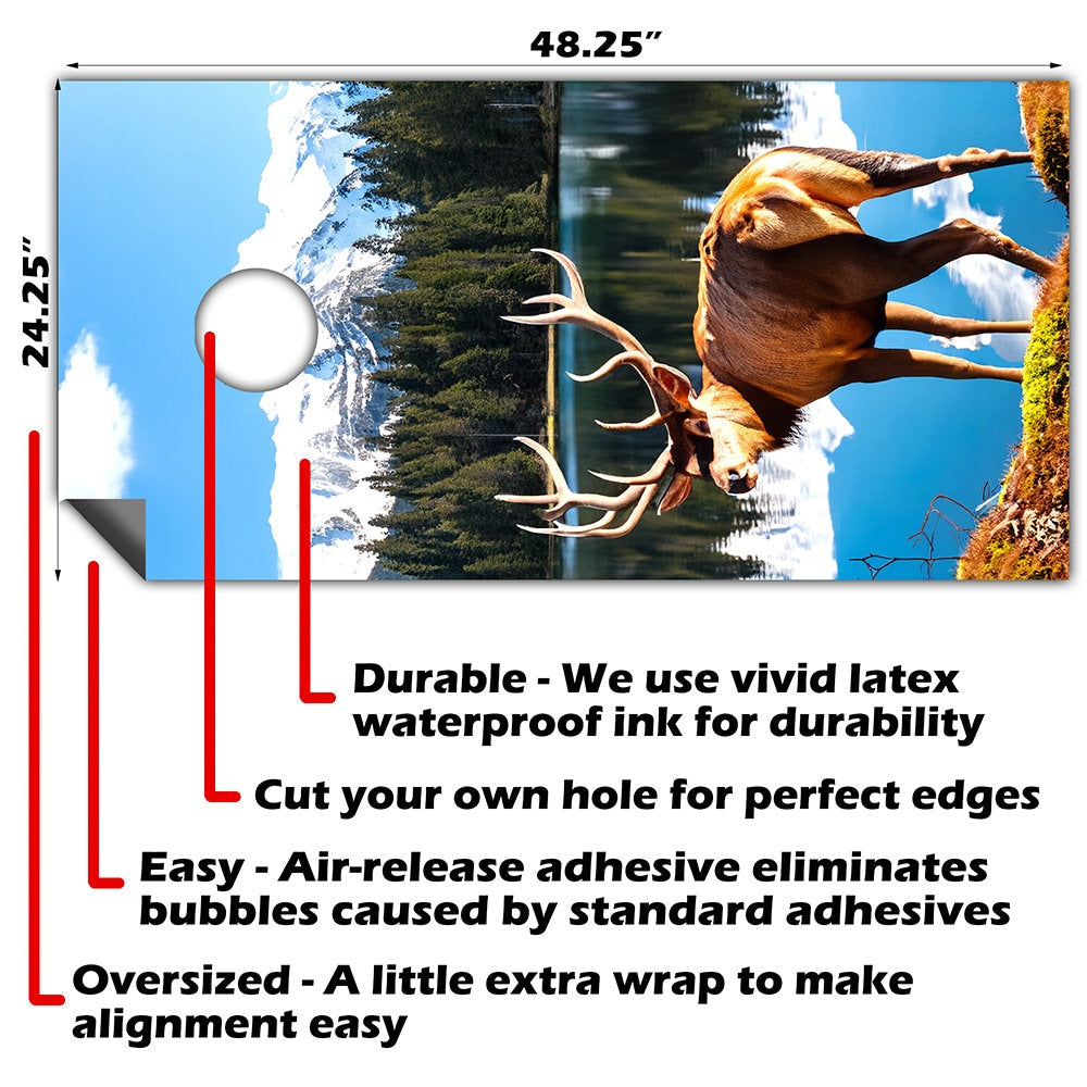 Home → Cornhole Custom Company Logo Set → Buck on Quiet Lake - Cornhole Board Wrap - Set of 2