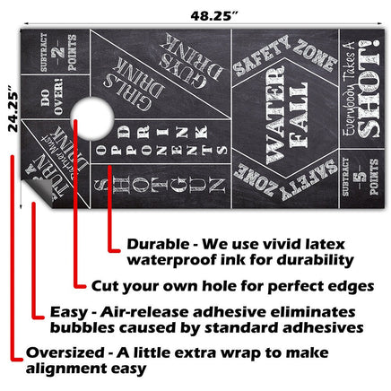 Chalkboard Drinking Game - Cornhole Board Wrap - Set of 2