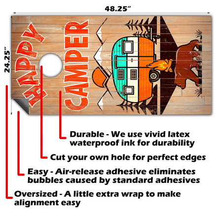 Home → Cornhole Custom Company Logo Set → Happy Camper - Cornhole Board Wrap - Set of 2