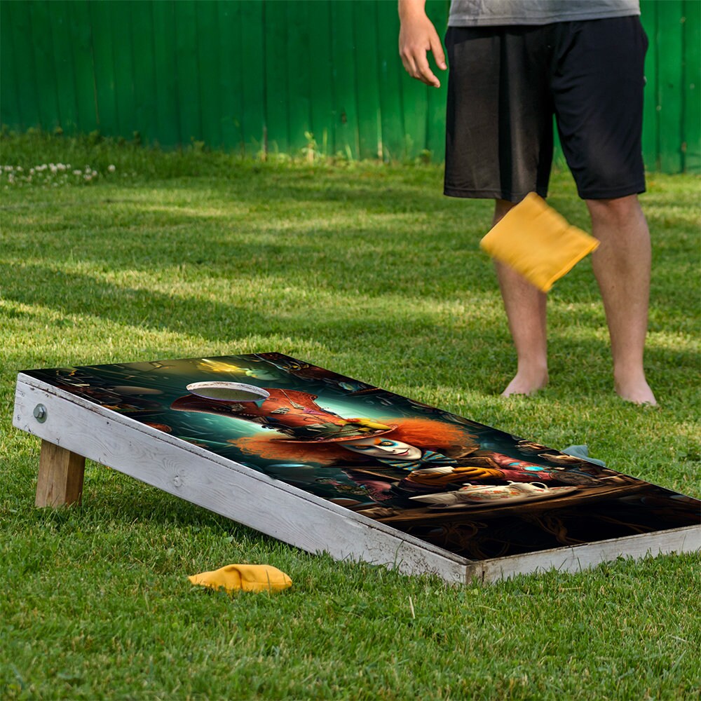 Home → Cornhole Custom Company Logo Set → Mad Hatter Cheshire Cat - Cornhole Board Wrap - Set of 2
