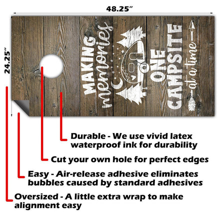 Home → Cornhole Custom Company Logo Set → Making Memories at Camp - Cornhole Board Wrap - Set of 2