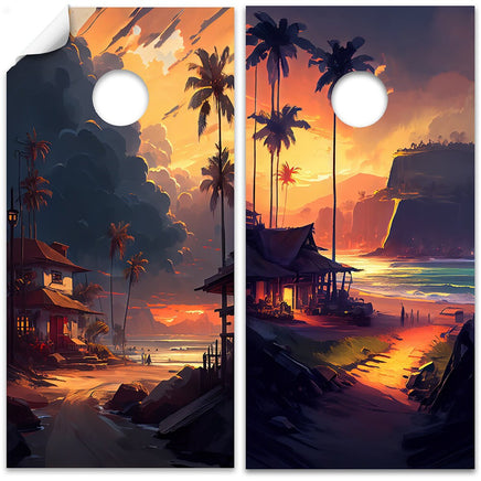 Home → Cornhole Custom Company Logo Set → Tropical Sunset Painting - Cornhole Board Wrap - Set of 2