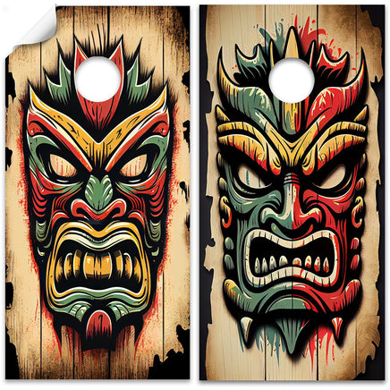 Home → Cornhole Custom Company Logo Set → Tropical Tiki Masks - Cornhole Board Wrap - Set of 2