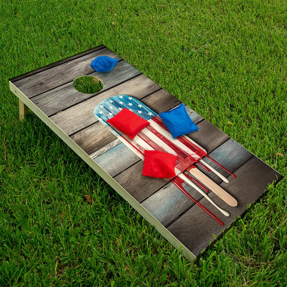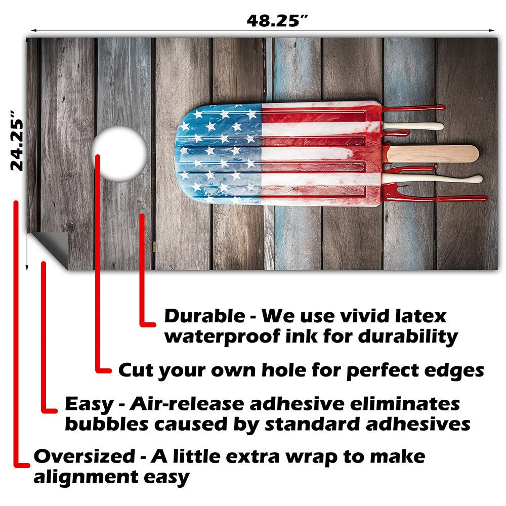 Home → Cornhole Custom Company Logo Set → USA American Flag Popsicle - Cornhole Board Wrap - Set of 2
