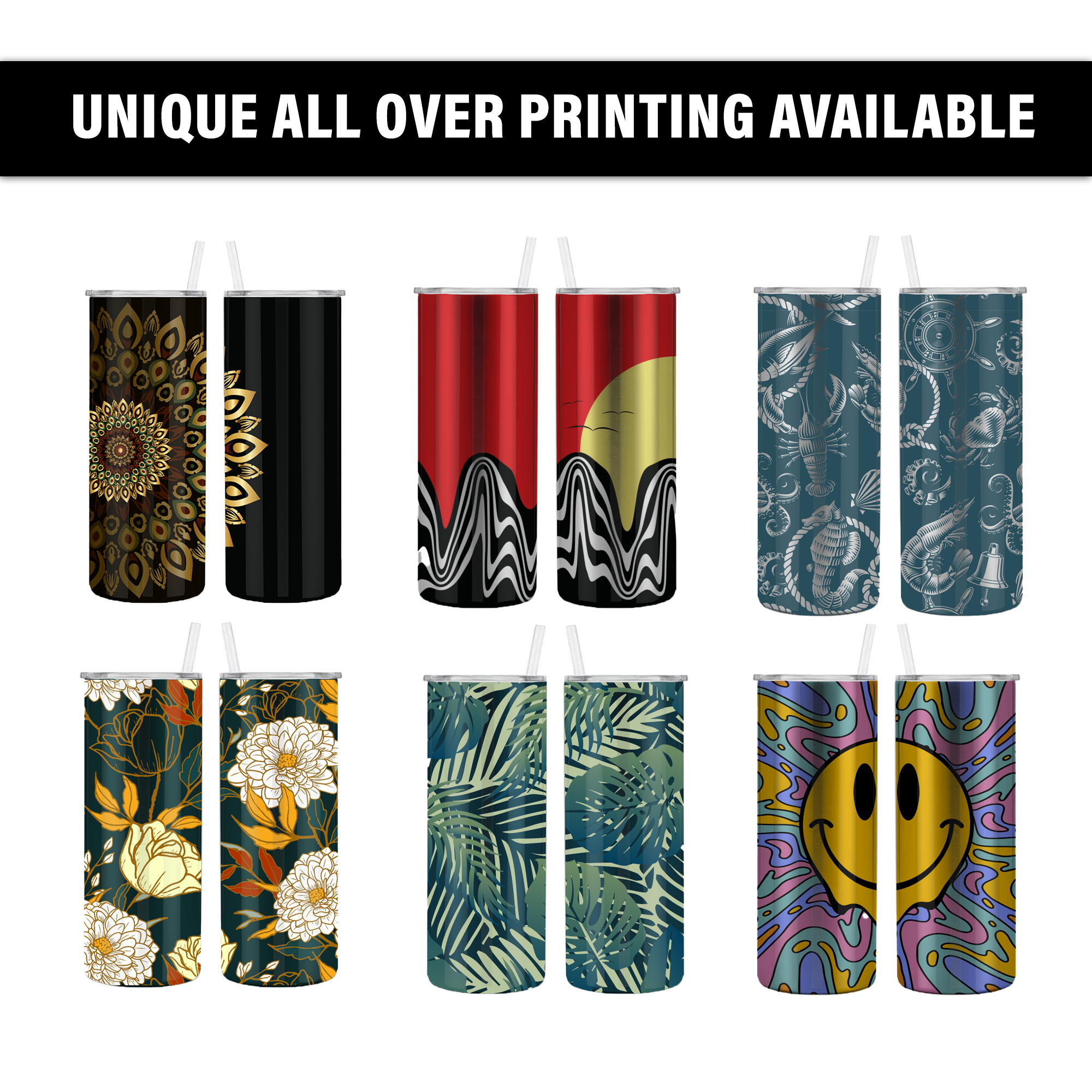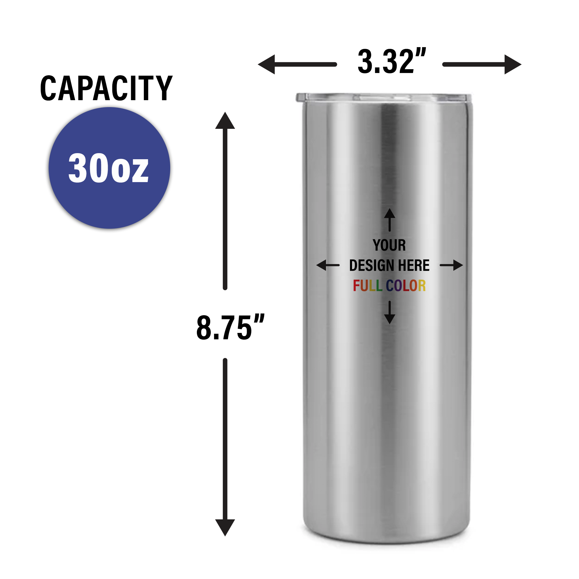 - Full Color Customizable Tumbler: Send us your image, logo, or text for a simple personalized design or your unique design that wraps around the entire tumbler. For allover printing, design files should measure 10.43” x 8.75” (w x h) for best results.