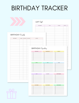 Never forget to buy a birthday gift or send a birthday card again! This birthday tracker is just what you need to make sure you're always prepared to celebrate your loved ones birthdays!
