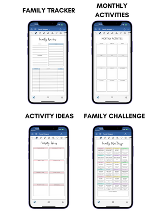 Stay connected and organized with these Family Widgets! Track family schedules, plan monthly activities, explore new ideas, and complete a 30-day challenge—ready to drag and drop into your digital phone planner!