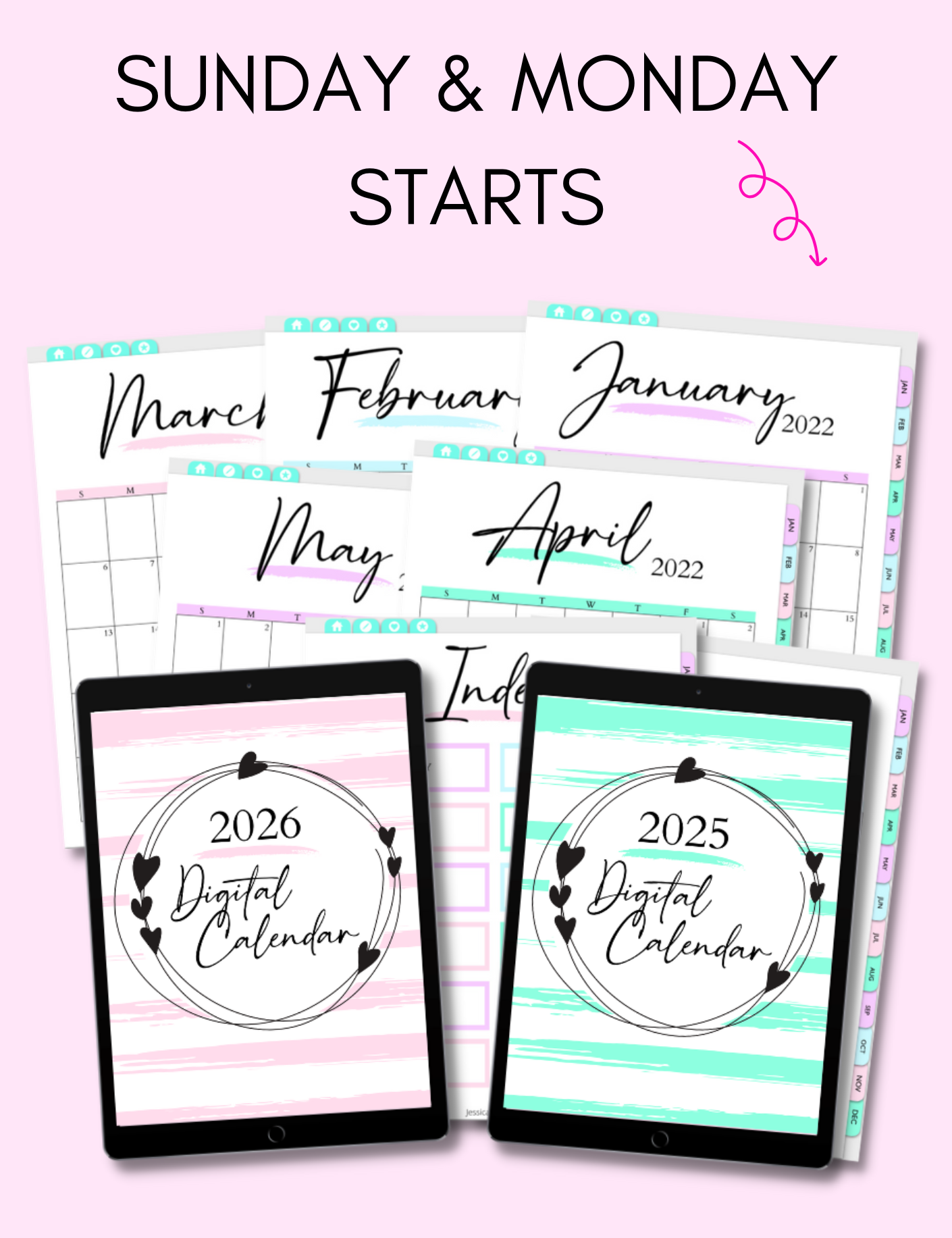 - 2024, 2025, & 2026 Digital Calendar (Monday start) + Annual updates