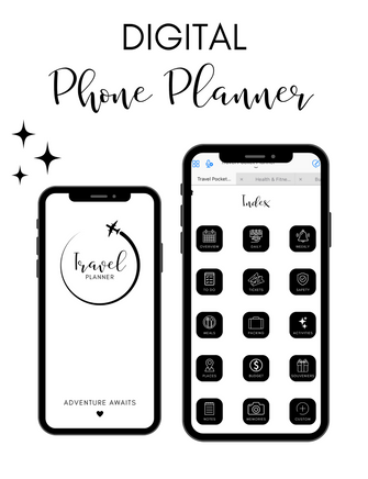 The Travel Pocket Planner is an undated digital phone planner that can be used year after year. It covers all the travel planning basics, making it very functional, simple and easy to use.