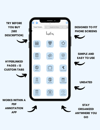 The Travel Pocket Planner is an undated digital phone planner that can be used year after year. It covers all the travel planning basics, making it very functional, simple and easy to use.