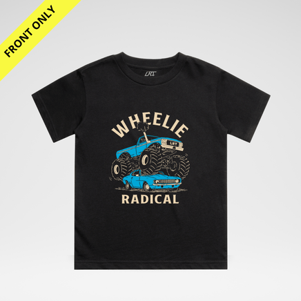 Let them channel their inner daredevil with the Wheelie Radical Tee—a must-have for every tiny gear head.