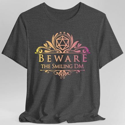 Claim your title at the gaming table with our 'Beware the Smiling DM', a dm shirt, tailored for the cunning Dungeon Master. Crafted from premium materials, this comfortable tee ensures you stay at ease whether plotting your next move or leading an epic campaign.