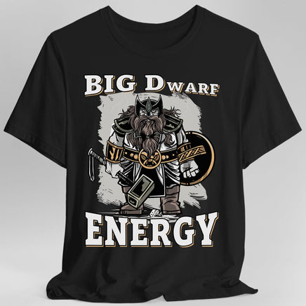Show off your dwarf pride with our 'Big D(warf) Energy' t-shirt, perfect for fans of playing the stalwart dwarves in fantasy RPGs like Dungeons & Dragons. This bold and humorous tee captures the essence of dwarf characters—tough, fearless, and full of undeniable presence. Whether you’re delving into deep dungeons or crafting in the forge, this shirt is a fun nod to your favorite fantasy race. Embrace your inner dwarf with a tee that's as durable and dependable as the characters it celebrates. Ideal for gaming sessions, fantasy conventions, or casual wear!