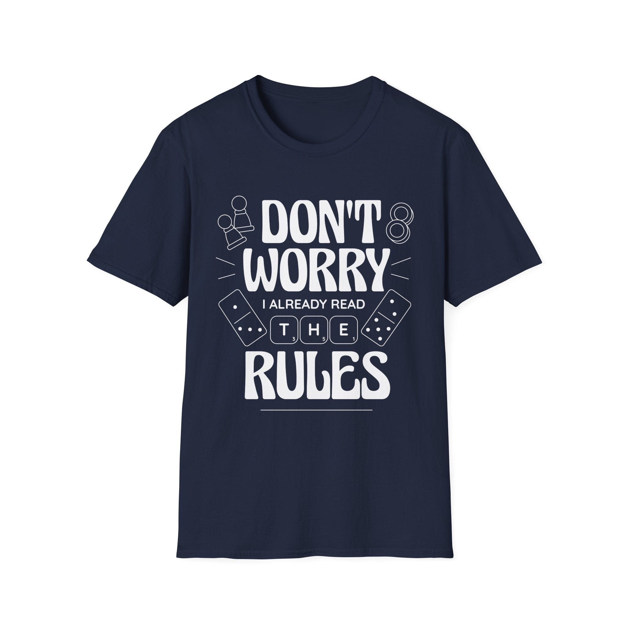 Get your game on with this unique Board Games T-shirt, perfect for any true player! Show off your knowledge and love for board games with the witty phrase "Don't Worry I Read The Rules". This playful tee will surely make you stand out at your next game night.