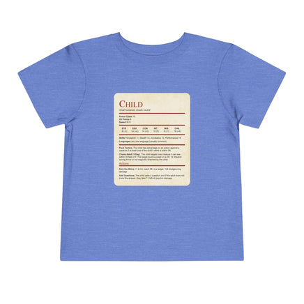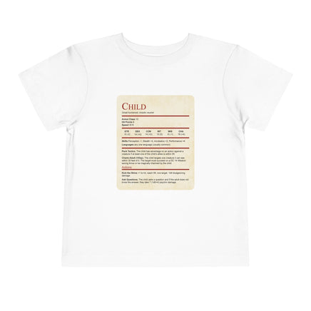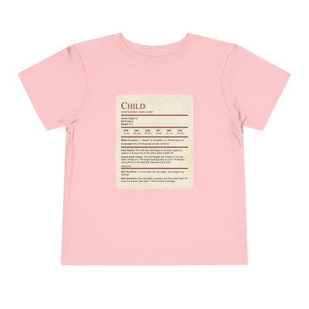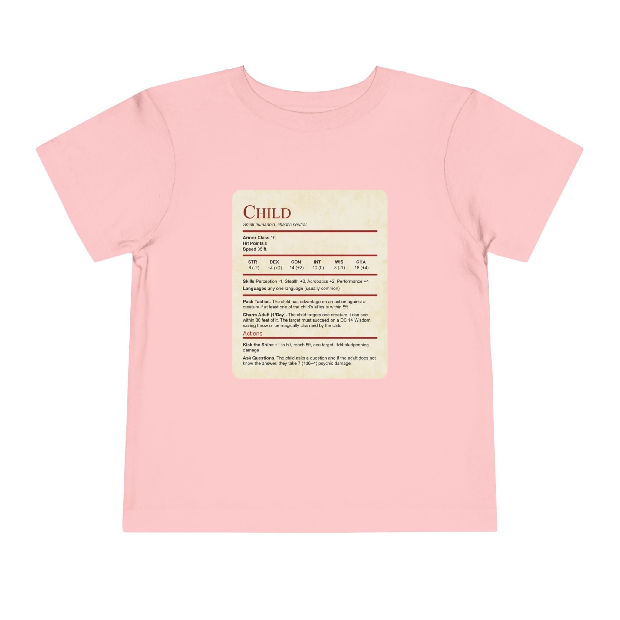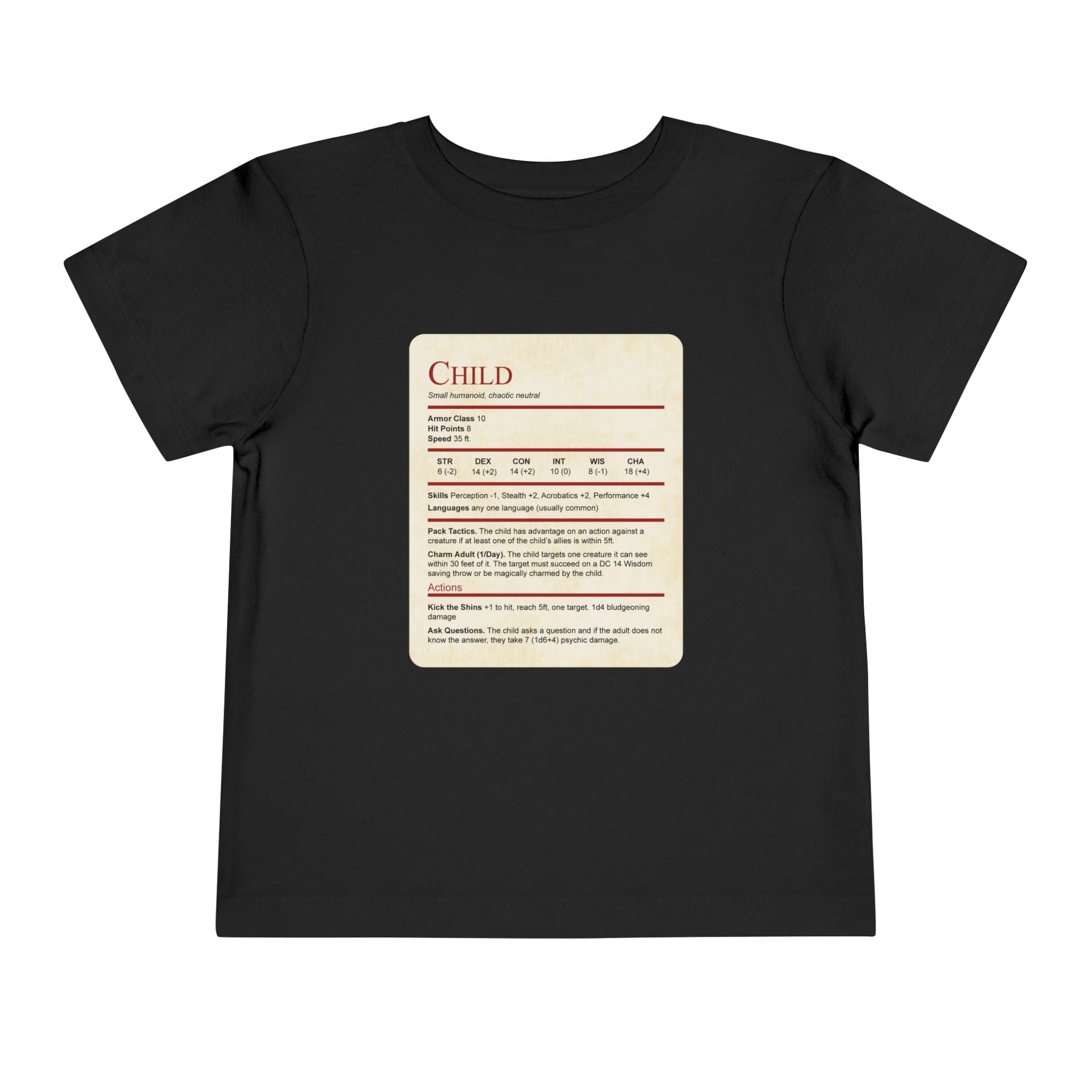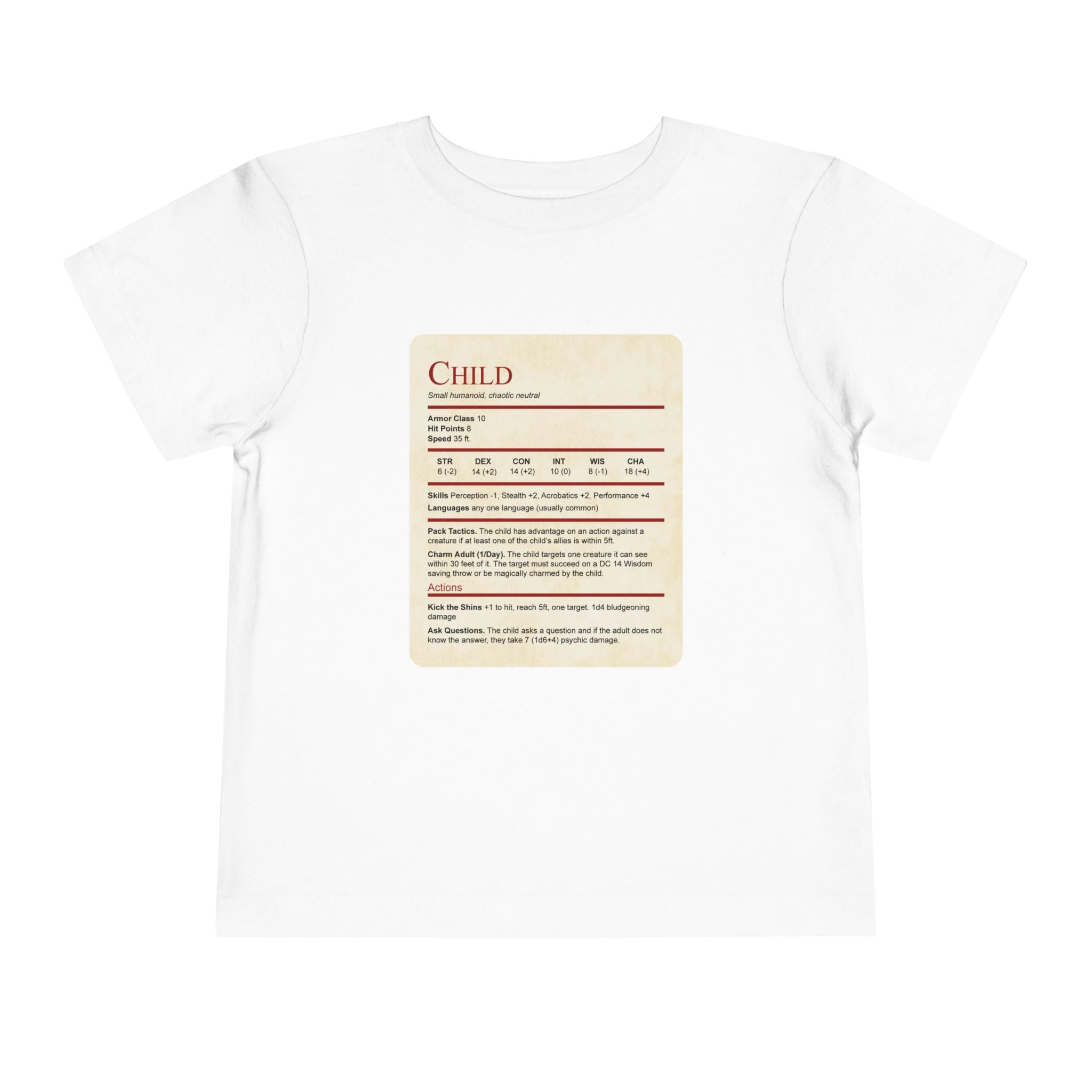 Home → Sunburst Collection → D&D Toddler Shirt Child Stat Block