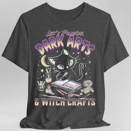 Unleash your witchy side with our Let's Practice Dark Arts & Witch Crafts unisex t-shirt! Perfect for pastel goths and those who love all things mystical and mysterious. Summon up some style and magic with this one-of-a-kind shirt.