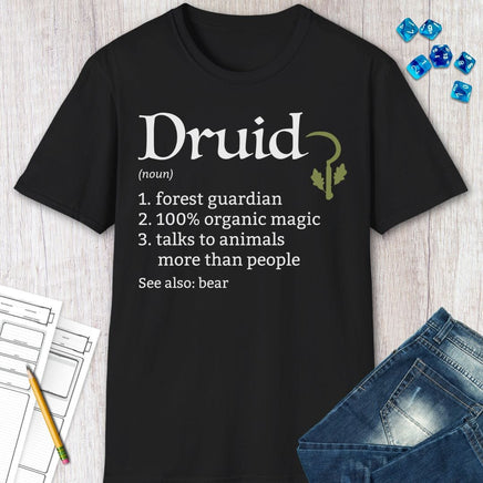 Unleash your wild side with our Druid Class Definition T-shirt! Perfect for any DnD fan, this tee features a playful definition of the druid class, complete with nods to the world of dungeons & dragons. Show off your love for the game and your quirky sense of humor with this unique shirt.