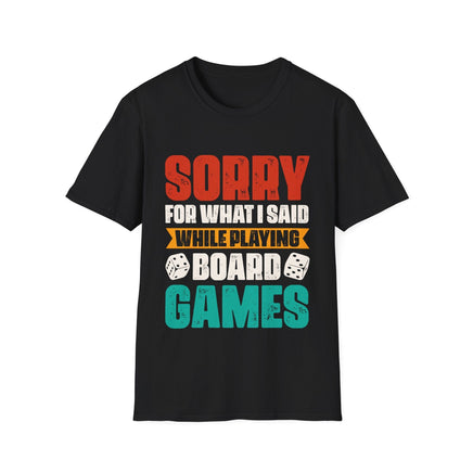 Apologize in advance with our Sorry for What I Said While Playing Board Games shirt! Perfect for board game lovers, this unisex jersey tee is a fun way to acknowledge your competitive side. No hard feelings, right? Available now!