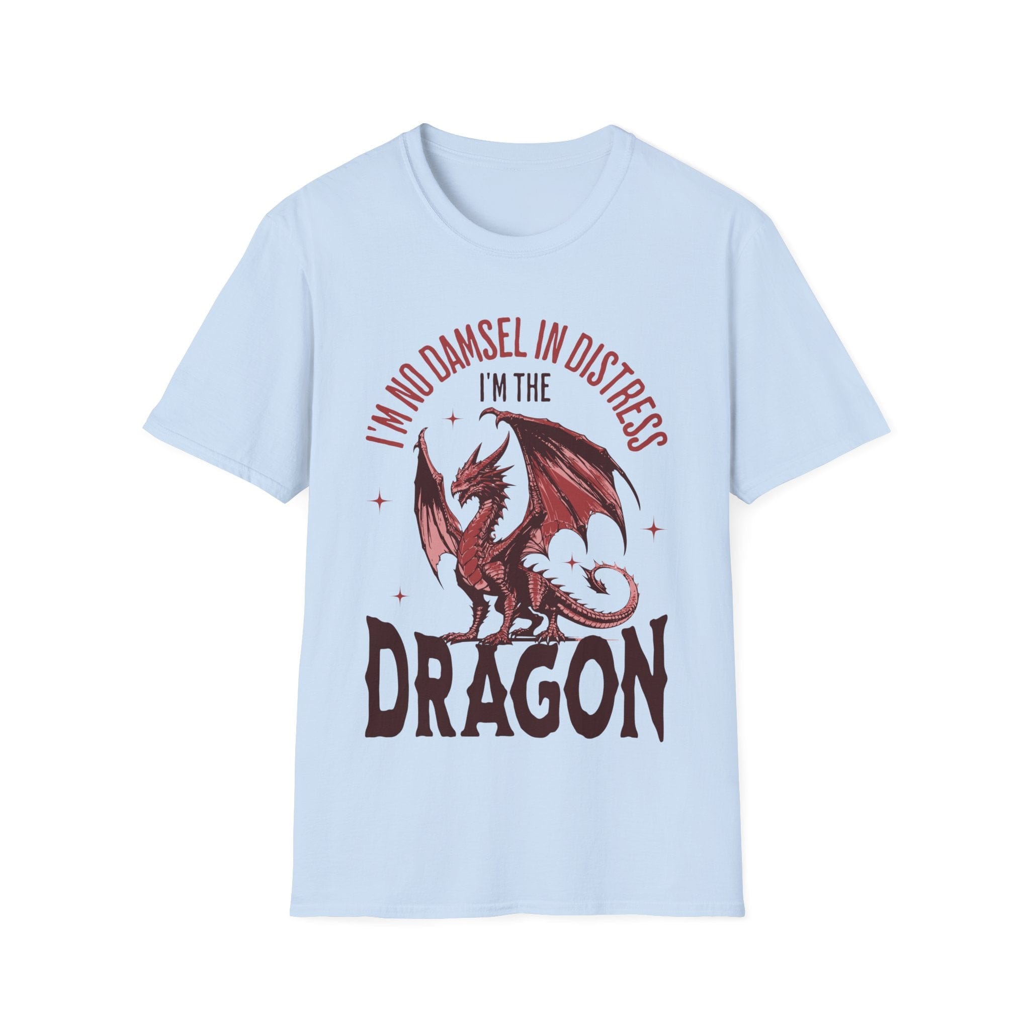 Who needs rescuing when you breathe fire? This bold dragon tee flips the fairytale on its head with the fierce declaration: “I’m no damsel in distress — I’m the dragon.” Perfect for anyone who slays their own monsters, claims their own gold, and doesn’t wait around for a knight in shining armor.