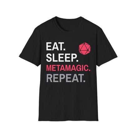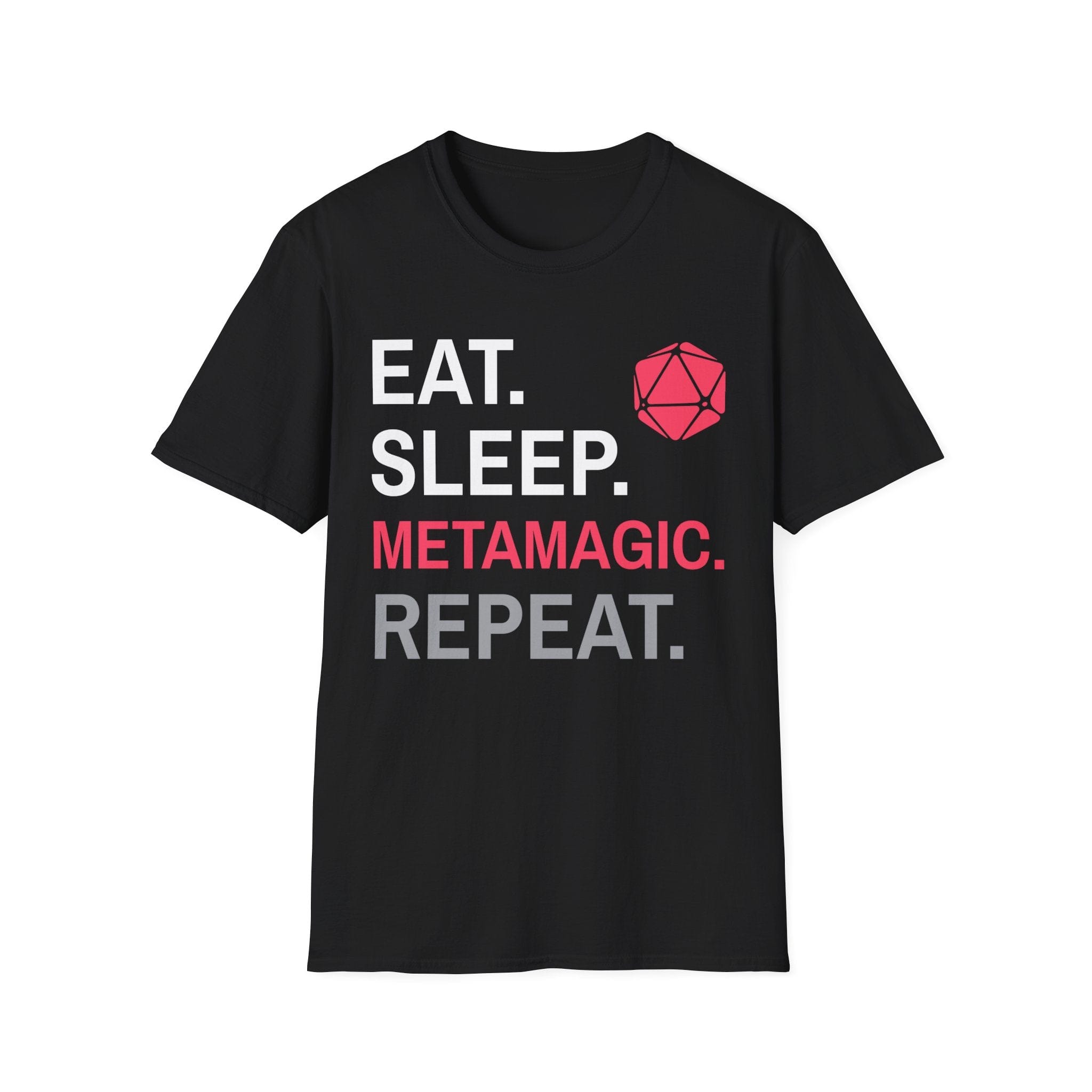 Channel your inner sorcerer with our 'Eat, Sleep, Metamagic, Repeat' t-shirt! Designed specifically for the sorcerers of Dungeons & Dragons who master the arcane arts through sheer force of will, this tee is essential for anyone who harnesses the power of Metamagic.