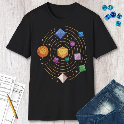 Roll into adventure with our Space Dice Solar System T-shirt. Explore the galaxy with the solar system dice, perfect for fans of dungeons & dragons. A comfortable and stylish t-shirt for any space explorer.