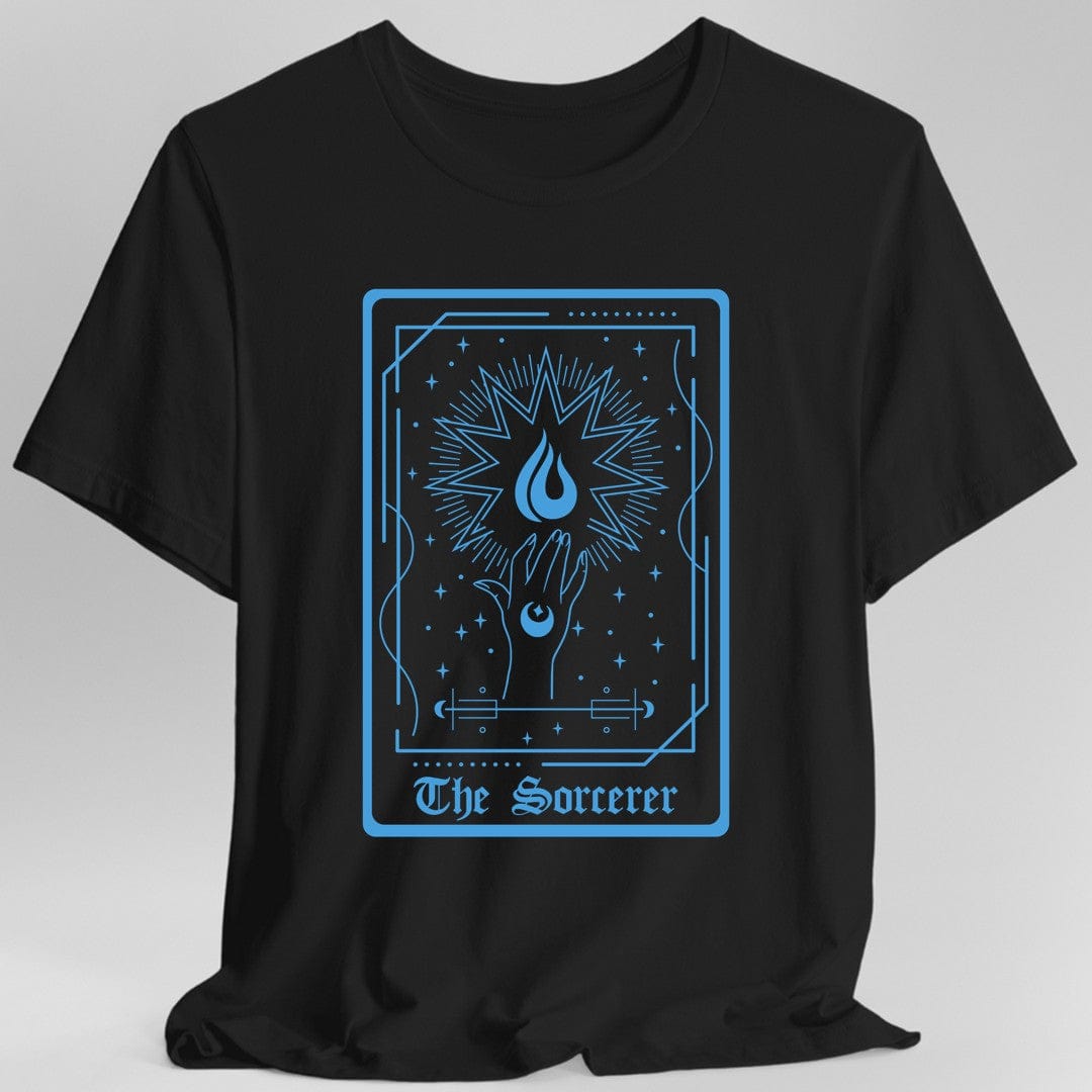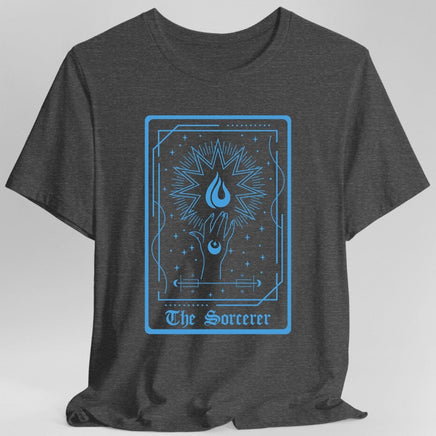 Unleash your innate magical power with 'The Sorcerer' tarot card t-shirt! Designed for Dungeons & Dragons players who command the arcane with effortless flair, this tee embodies the mystical and unpredictable spirit of the sorcerer class.