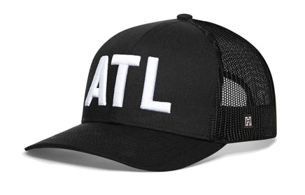 Home → Haka Hats Collection → Atlanta White Block Trucker Hat | Black White ATL Block Snapback