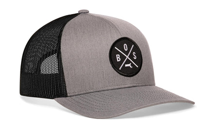 Rep your city in style with the HAKA Boston Trucker Hat, featuring a premium BOS X embroidered patch on our gray-black signature 5.0 trucker.