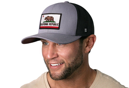 Rep California in style with the HAKA California Flag Trucker Hat, featuring a premium Red, white and brown CA embroidered patch on our gray-black signature 5.0 trucker.