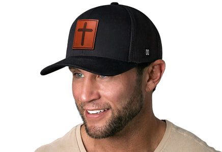 Cross Trucker Hat Rectangle Leather | Black cross Snapback
