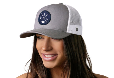 Rep your city in style with the HAKA Dallas trucker hat, featuring a premium DAL X embroidered X patch on our gray-white signature 5.0 trucker.