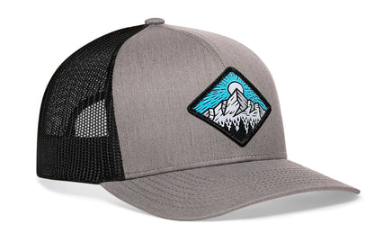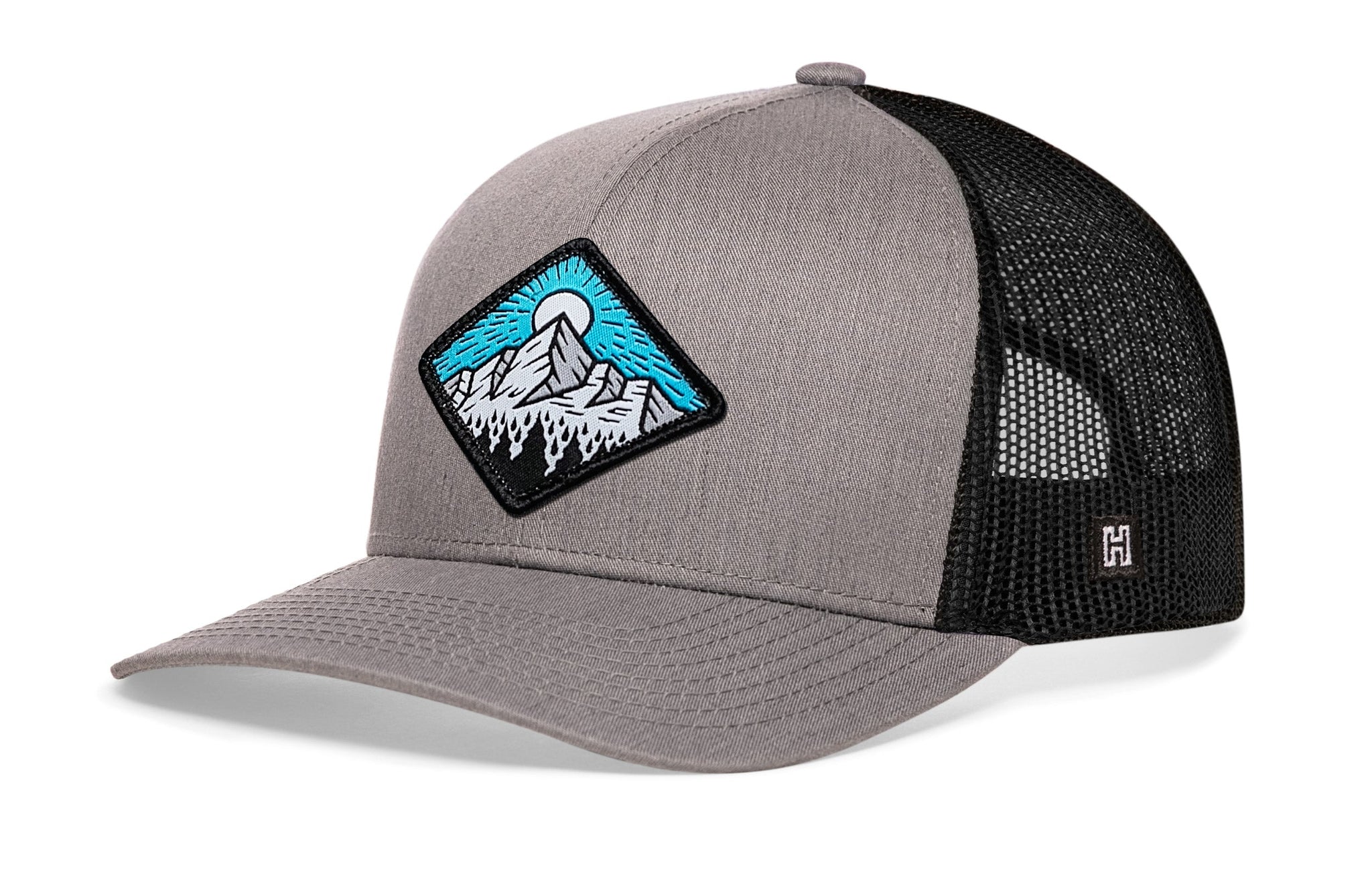 Rep the outdoors in style with the HAKA Diamond Mountain and Trees Trucker Hat, featuring a premium Outdoors woven patch on our gray-black signature 5.0 trucker.