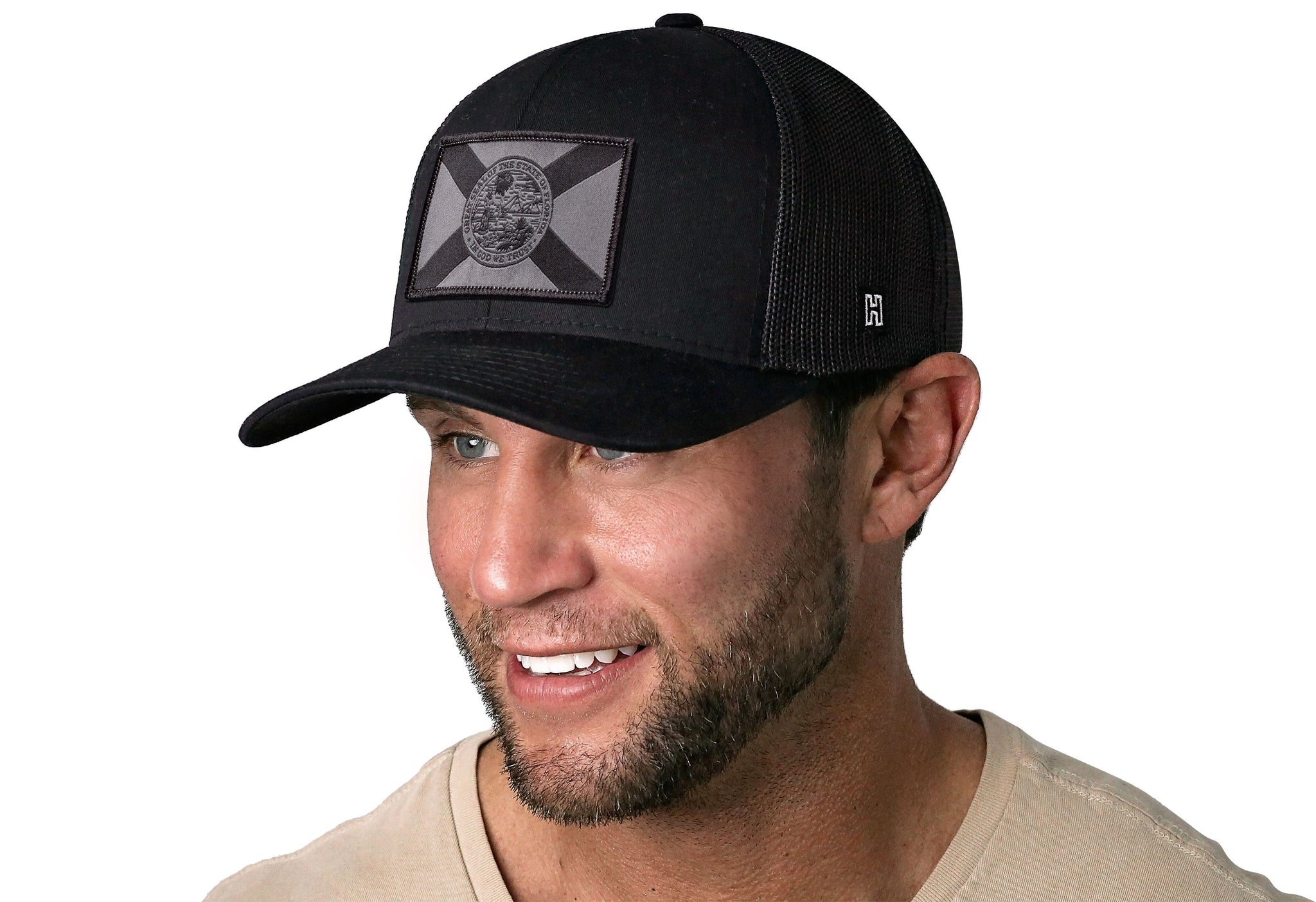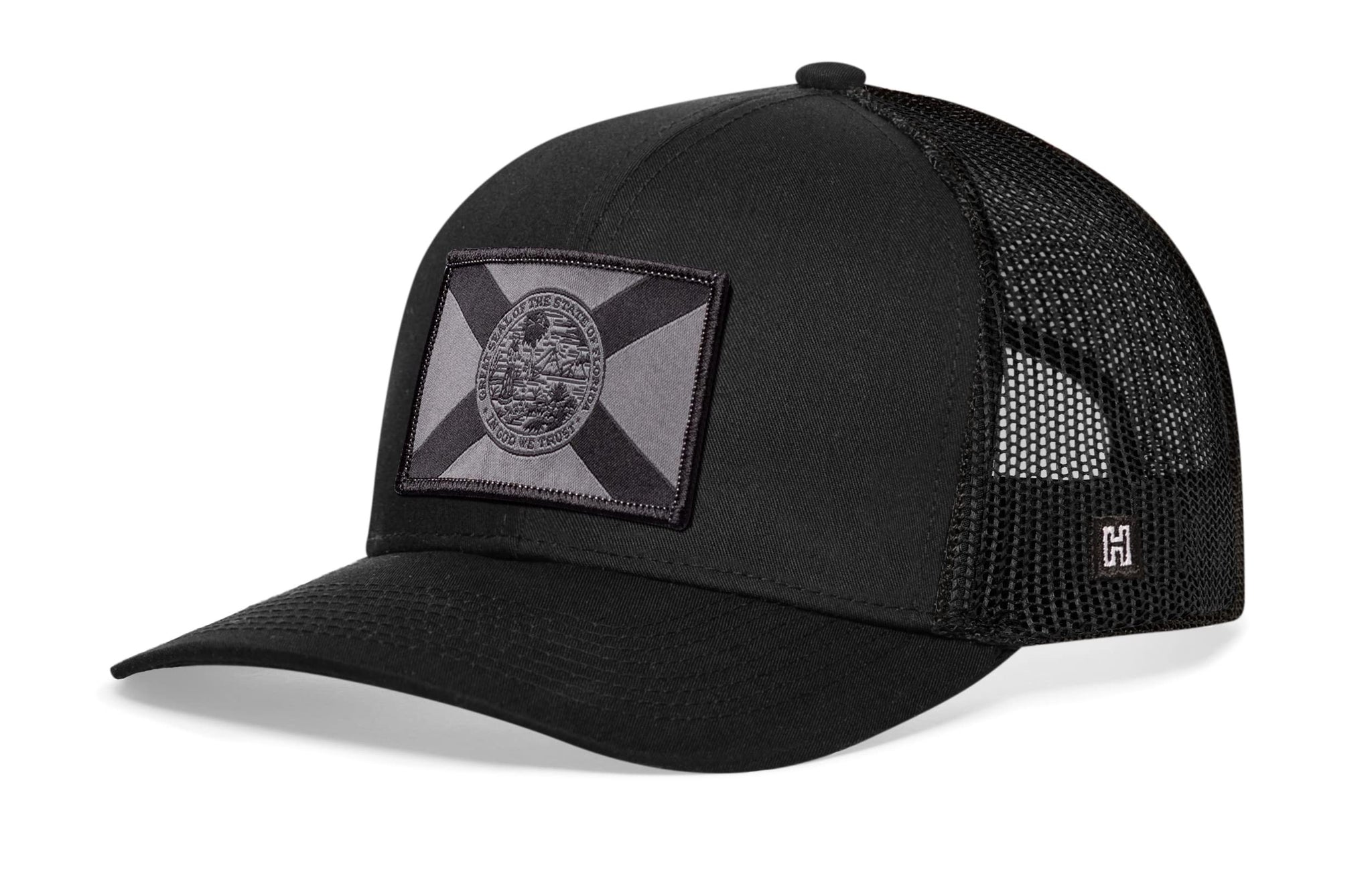 Rep Florida in style with the HAKA Florida Flag Trucker Hat, featuring a premium black and gray tactical woven patch on our black signature 5.0 trucker.