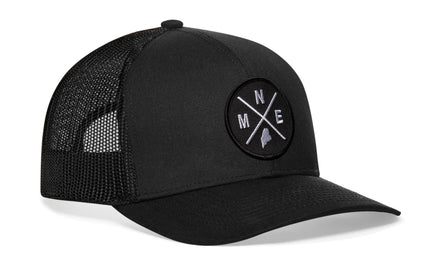 Rep Maine in style with the HAKA Maine Trucker Hat, featuring a premium black and white MNE X embroidered X patch on our black signature 5.0 trucker.