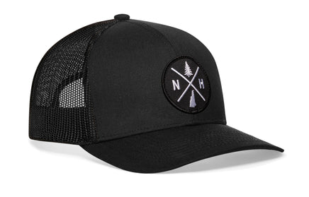Rep New Hampshire in style with the HAKA New Hampshire Trucker Hat, featuring a premium black and white NH X embroidered X patch on our black signature 5.0 trucker.